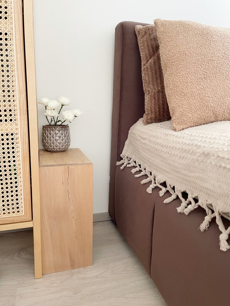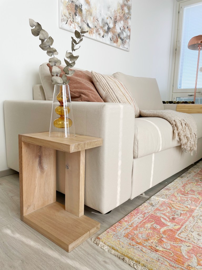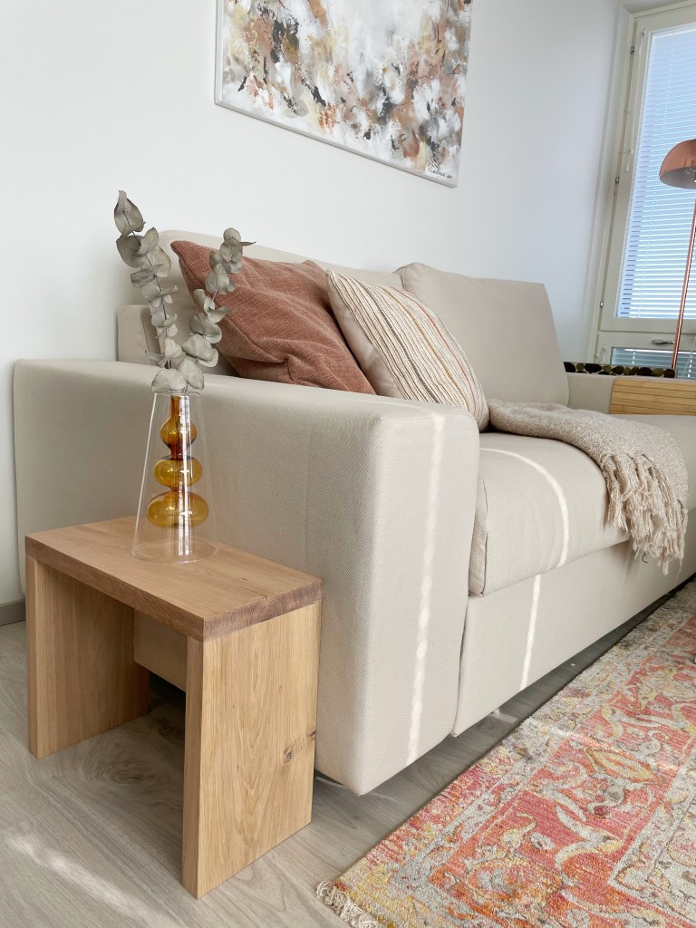 EKSKÄR – Tammi yöpöytä / sivupöytä✨ Tämä on ensimäinen suunnittelemani huonekalu mallioikeudella. Pöydän muotokieli syntyi tarpeesta löytää kaunis ja käytännöllinen ratkaisu pieneen tilaan. Halusin suunnitella pöydän, joka toimii yöpöytänä, sivupöytänä tai vaikka sohvapöytänä. Pöytä voi käyttää tilanteen ja kodin tarpeiden mukaan.