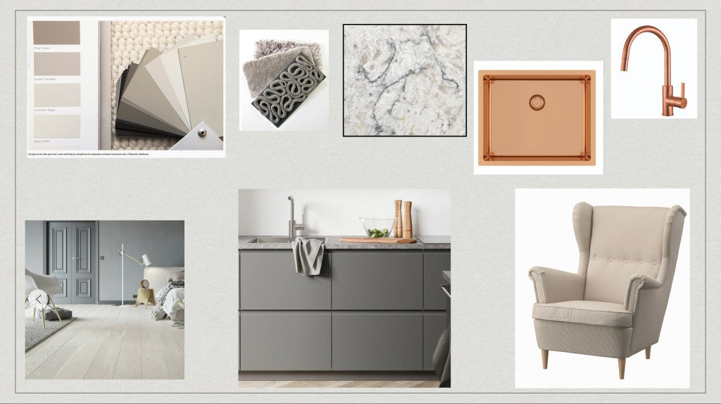 Tässä on Moodboard joka on toiminut inspiraationa koko asunnolle. Ajatus oli luoda harmoninen ja ihanan lämmin tunnelma joka säilyy läpi koko asuntoa.