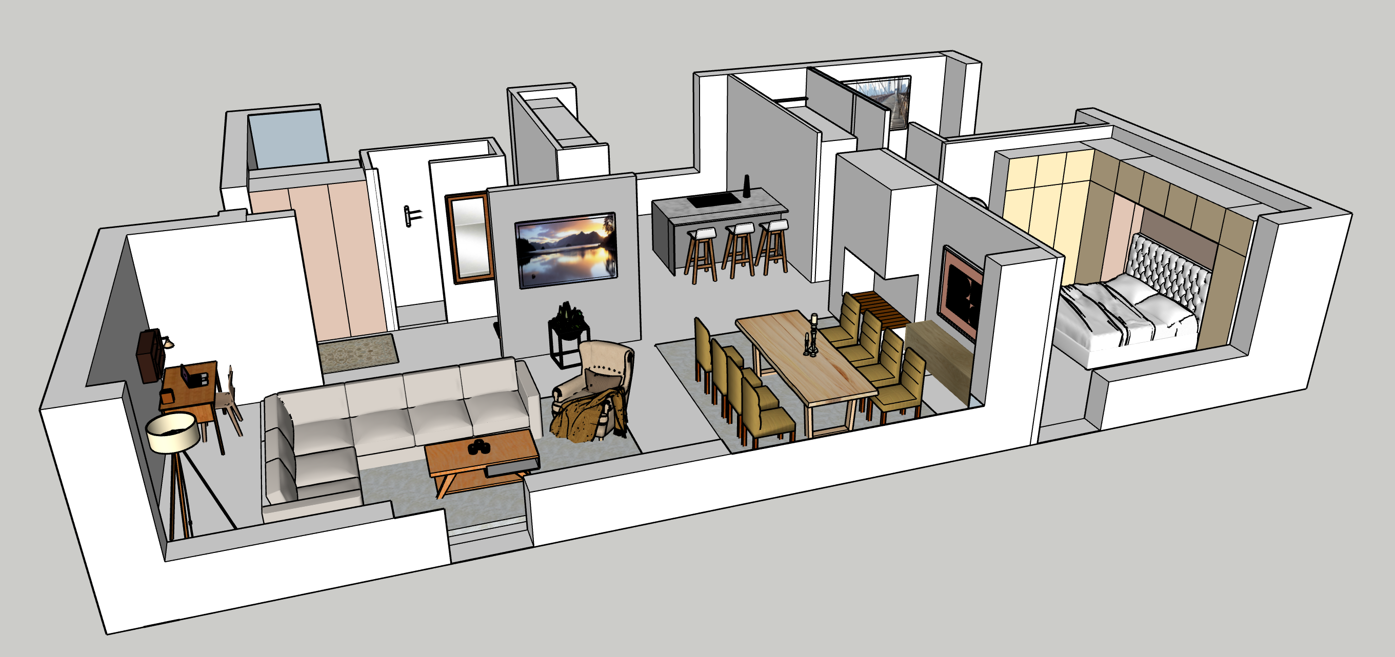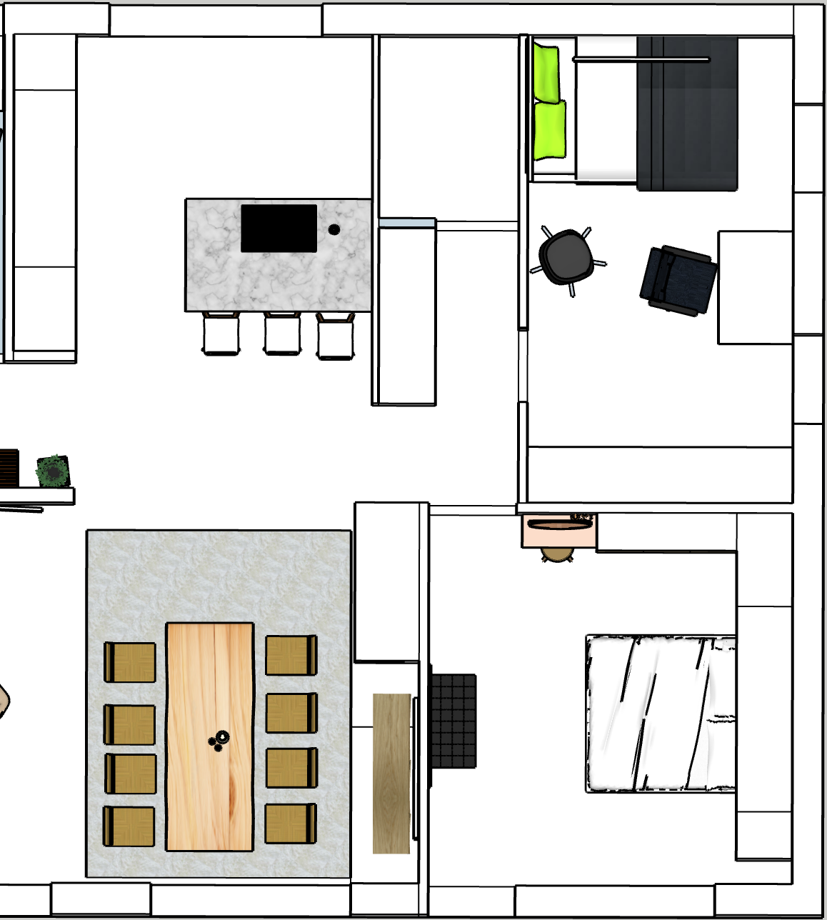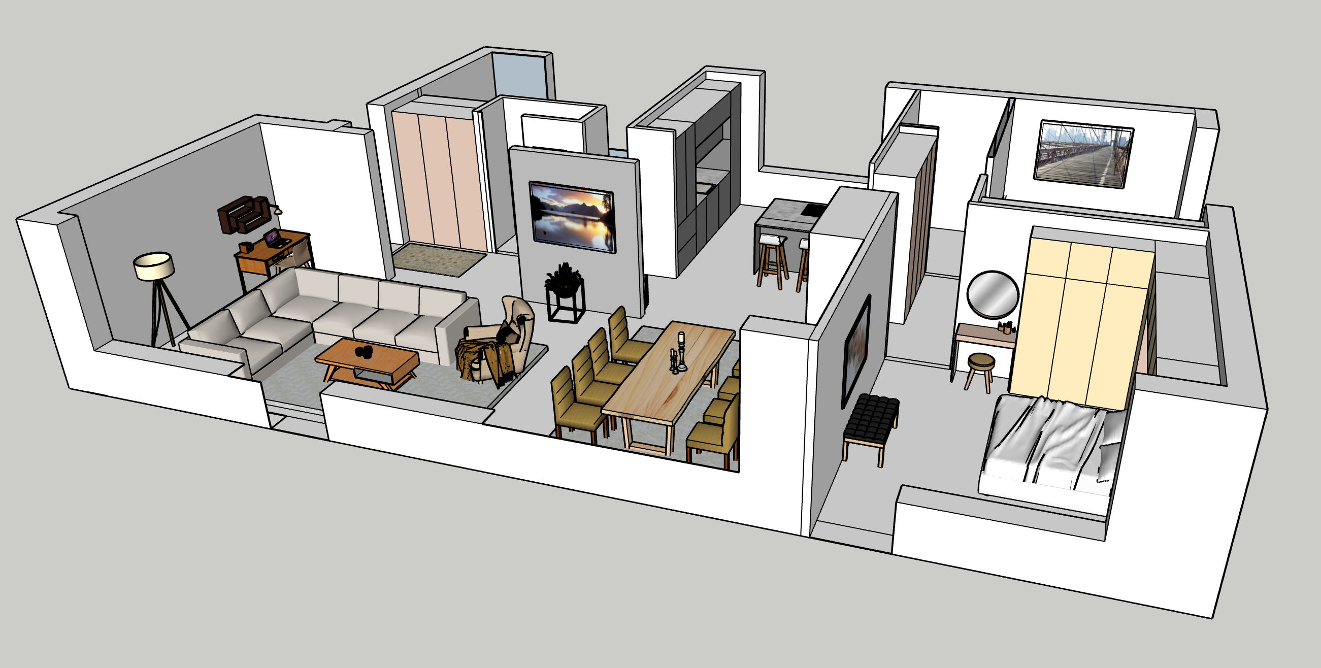 Tässä on 2D ja 3D kuvat. Näistä luotiin asunnon ilme.