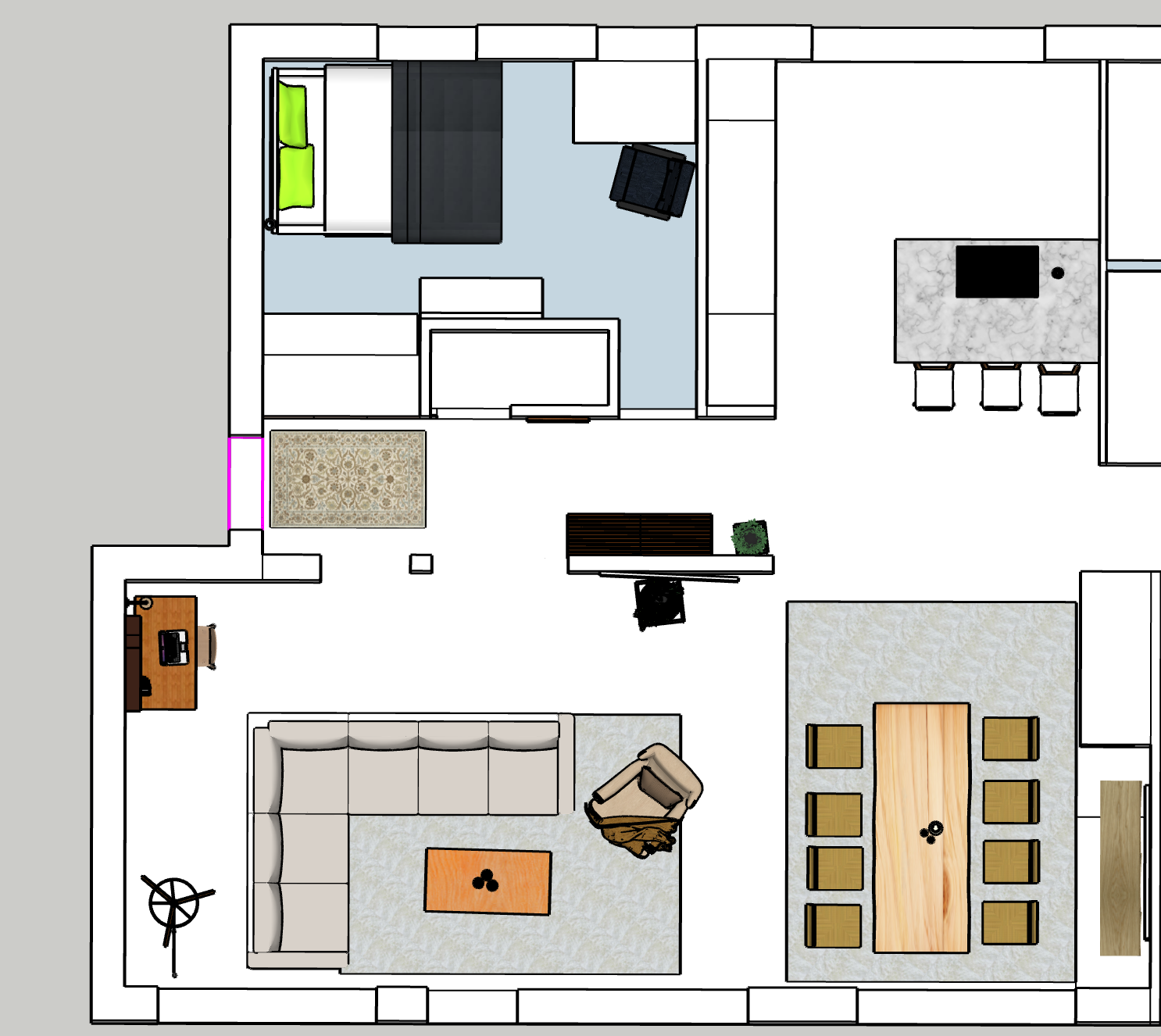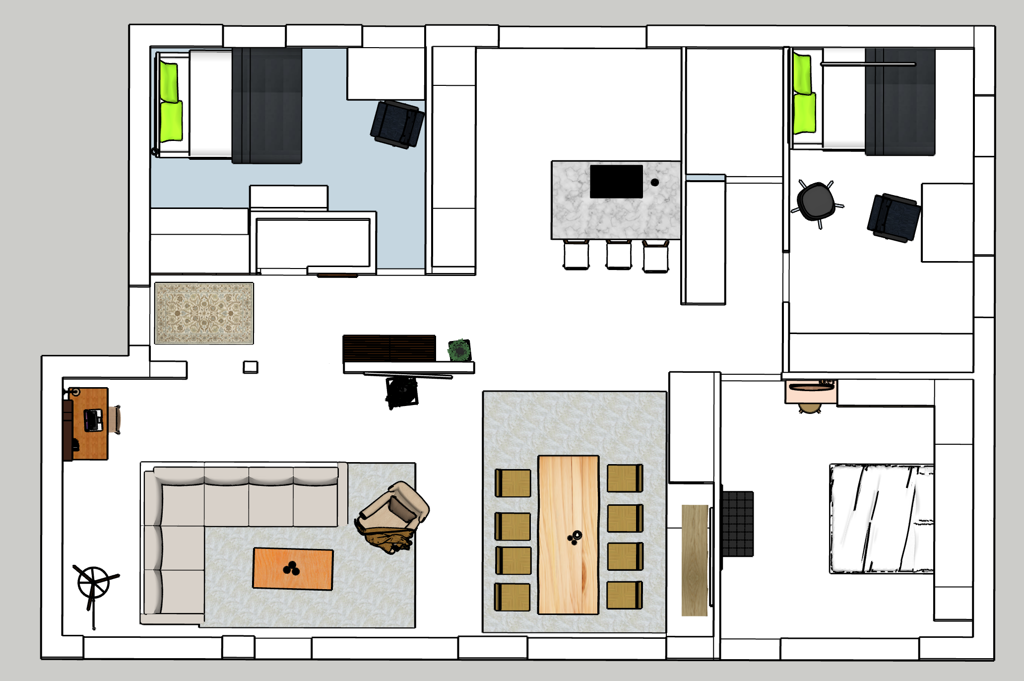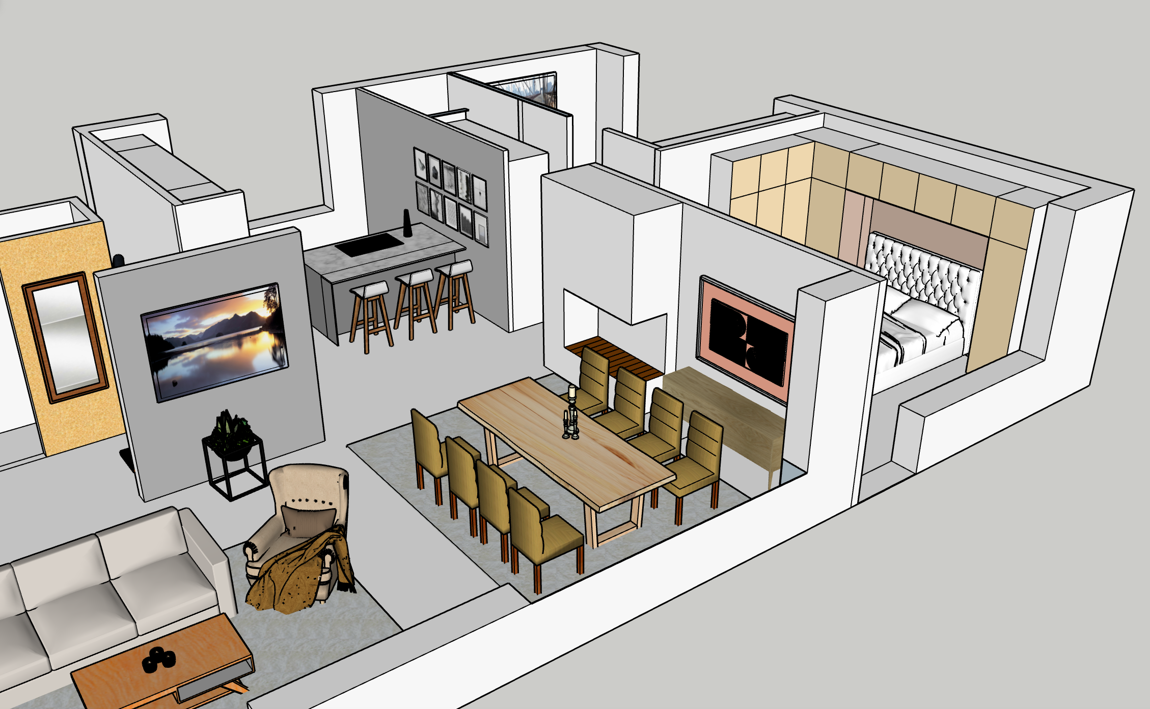 Tässä on 2D ja 3D kuvat. Näistä luotiin asunnon ilme.