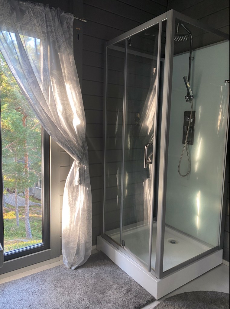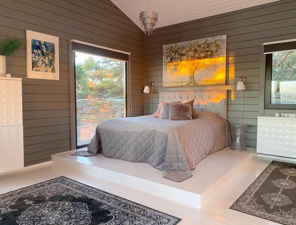 Kohteessa on upeat näköalat ja niitä piti tarkasti huomioida koko ajan suunnittelussa. Alkuvaiheessa kylpyhuone ja makuupaikka oli toisinpäin, mutta käydessä tontilla uudestaan totesin että tämä järjestys on ainut oikea. Ja näin saatiin hieno näköala myös sängyn ikkunasta.