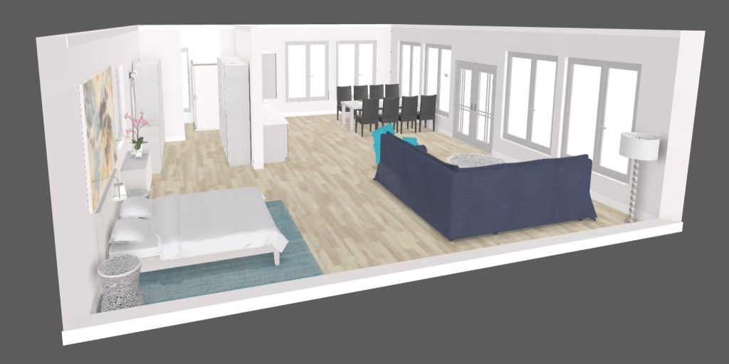 Päädyttiin pitää tila avoimena ja piste i päälle saatiin korottamalla sänkyä.