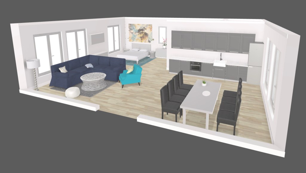 ”Studio Cliff” (73 m2 ) suunniteltiin kahdelle aikuiselle Turun saaristoon ja valmistui 2020. Rakennus sijaitsee n. 12 metriä merenpinnan yläpuolella, joten maisemat ovat upeat. Inspiraatio tähän ”yksiöön” tuli hotellihuoneista ja päätettiin jättää kaikki turhat väliseinät pois. Sen sijaan korotettiin sängyn paikka yhdellä askelmalla ja ”voila” maisemat avautuu jopa sängystä! Rakennus ei ole perinteinen mökki vaikka se onkin rakennettu hirrestä. Täältä löydät kaikki mukavuudet. Piirustukset tehtiin sekä 2D ja 3D.