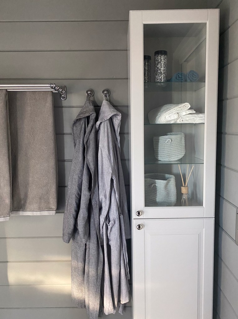 Kylpyhuoneessa löytyy vessa, suihku ja iso allaskaappi. Ja tietty ikkuna, joka antaa luonnonvaloa.