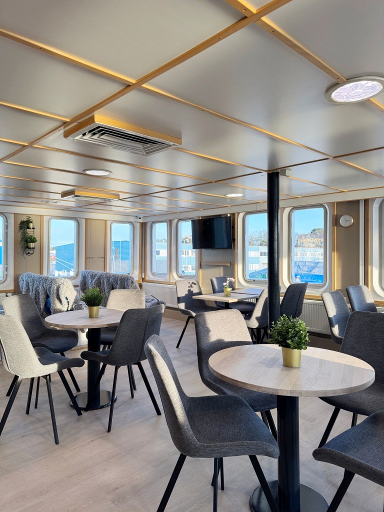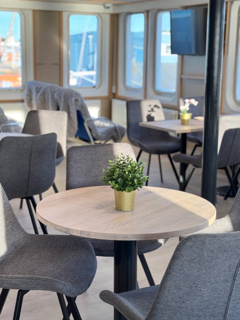 M/S Ejdernin matkustajatilat on varustettu uusilla, tyylikkäillä ja mukavilla kalusteilla, jotka tekevät matkasta rennomman ja miellyttävämmän. Kalustevalinnoissa on painotettu ergonomiaa, kestävyyttä ja esteettisyyttä, jotta tila säilyy viihtyisänä ja käytännöllisenä pitkään.